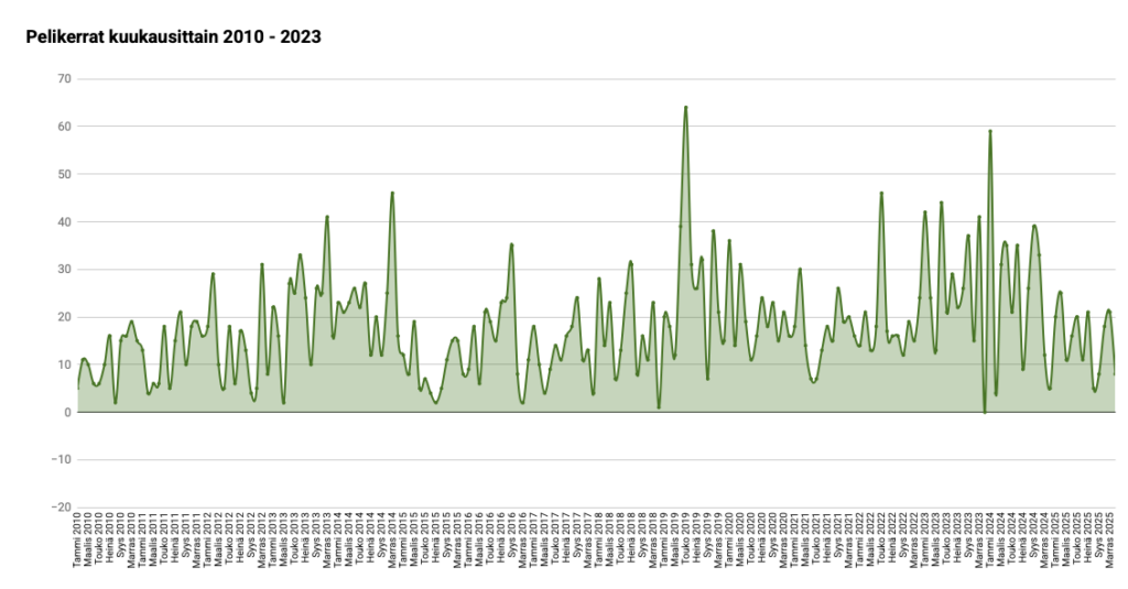 Kampanjapelien väliin jääminen teki myös yli 5 peliä pelattujen pelien listan melko erilaiseksi vs. 2024.